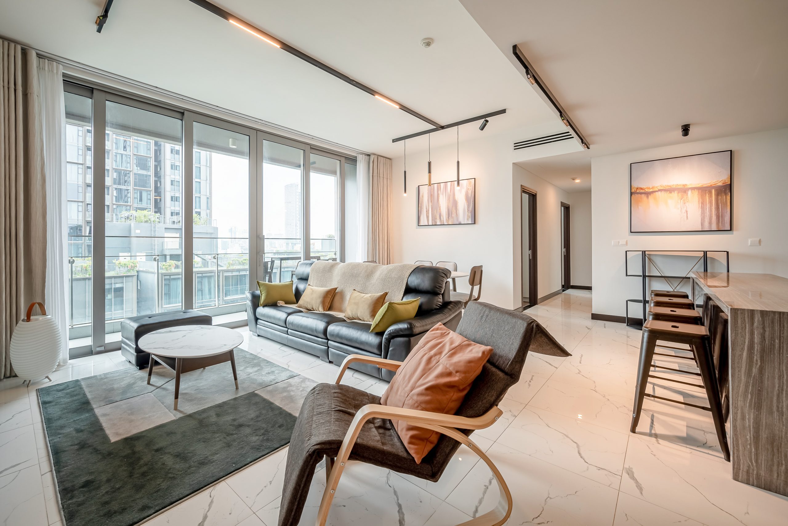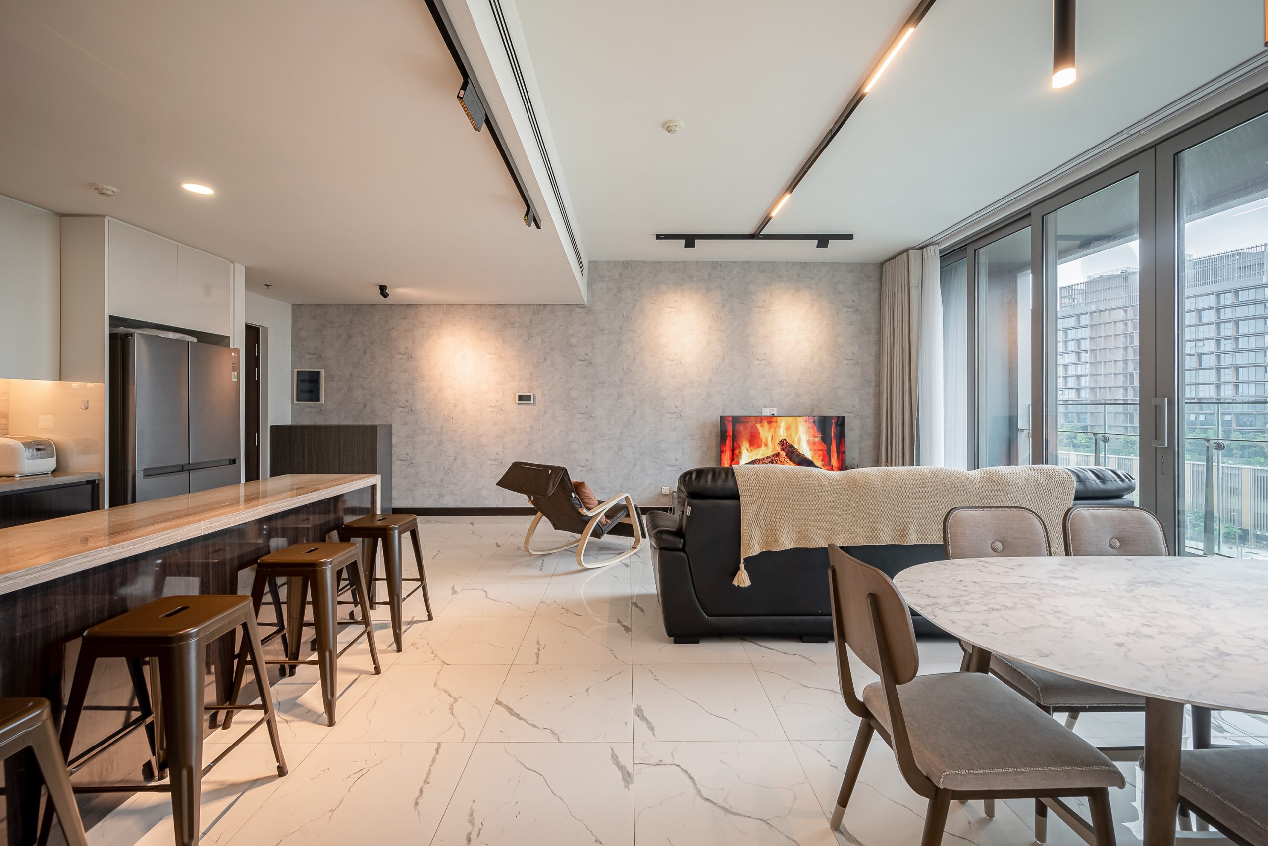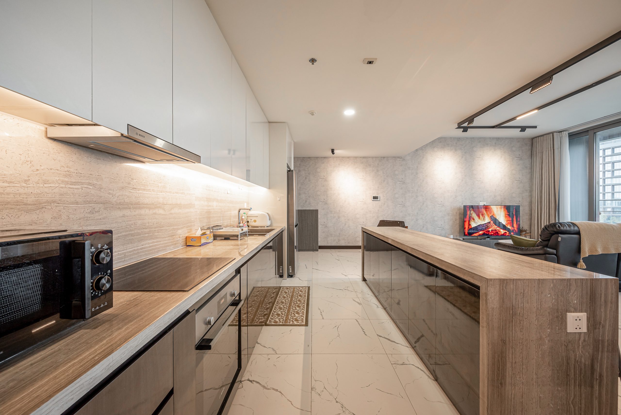 This is 127sqm 3 brs apartment and 2 baths with smart toilets, all new and high quality furnishing.