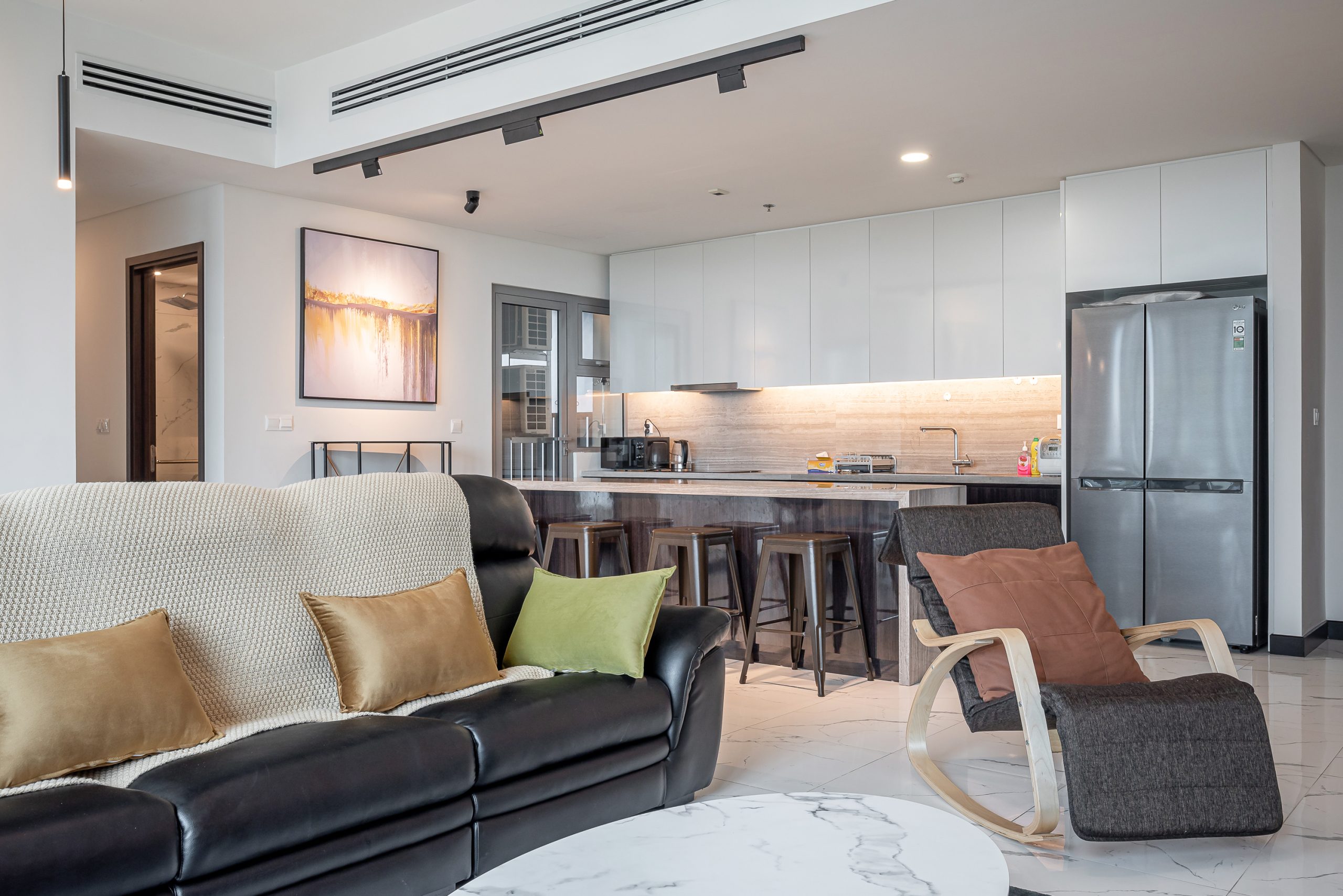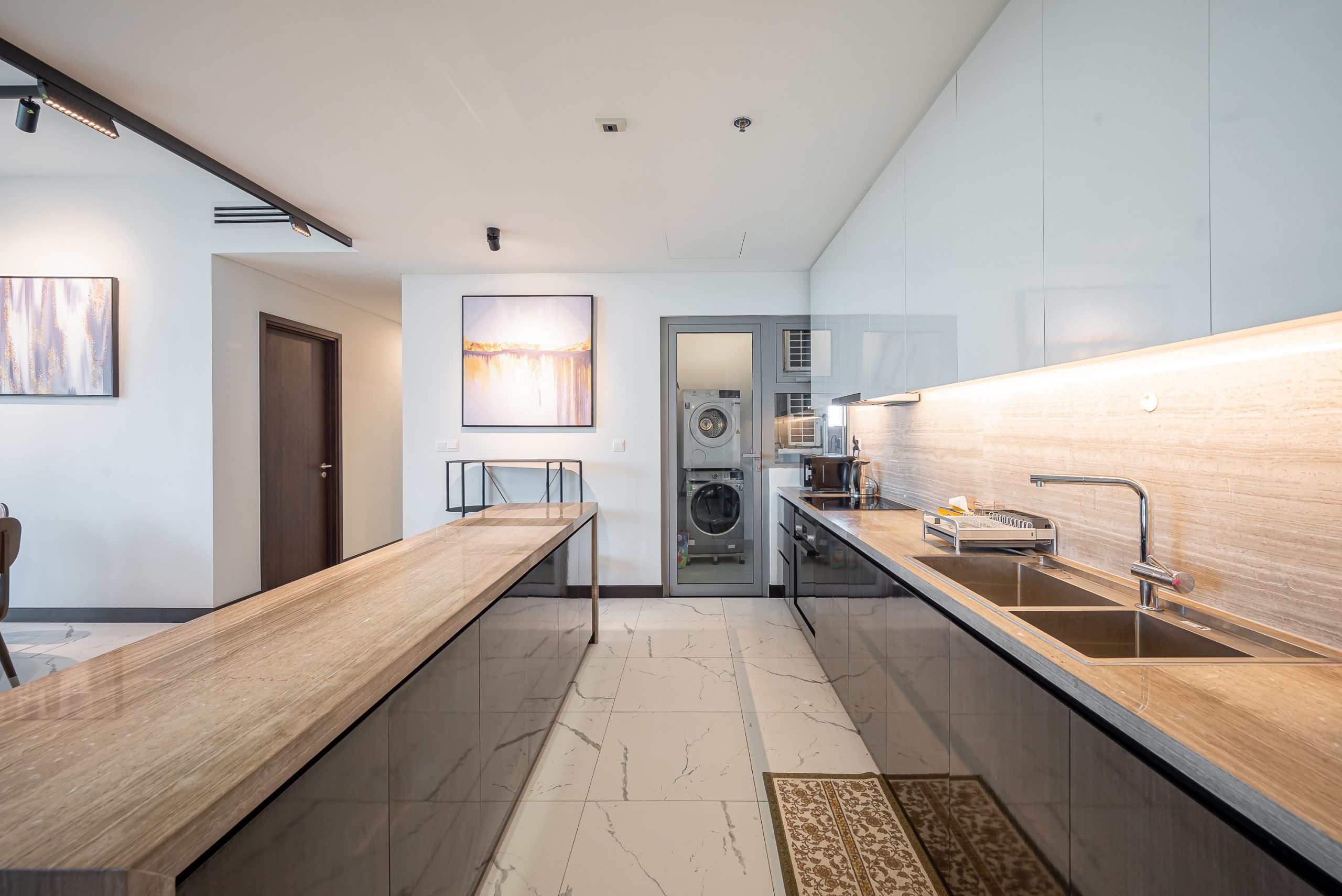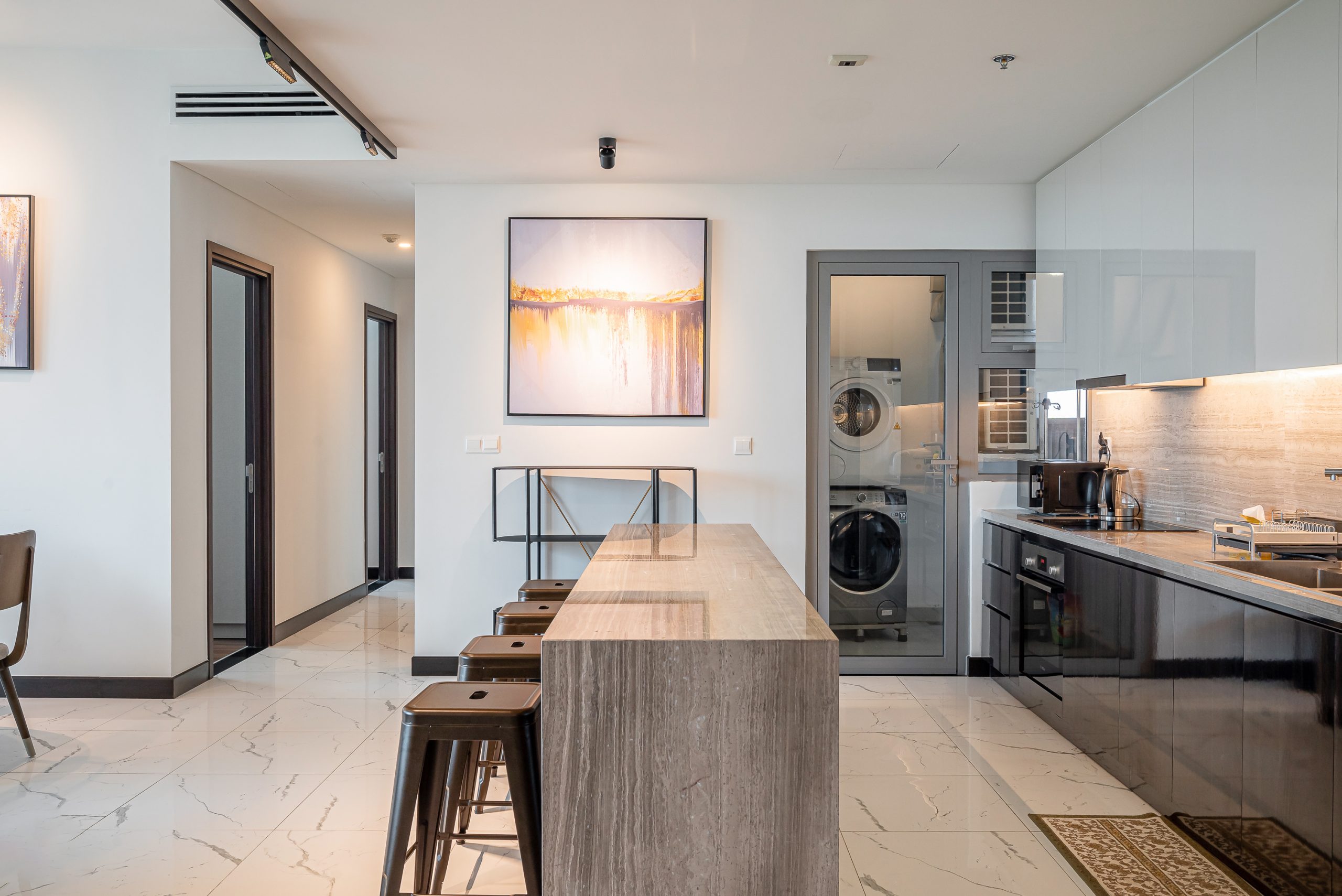 This is 127sqm 3 brs apartment and 2 baths with smart toilets, all new and high quality furnishing.